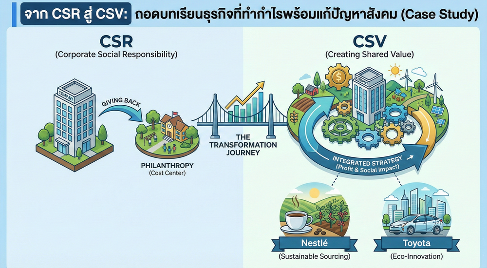 นี่คือหัวใจของแนวคิด CSV (Creating Shared Value) หรือ การสร้างคุณค่าร่วม ซึ่งไม่ใช่แค่เทรนด์ทางเลือก แต่กำลังกลายเป็นทางรอดและมาตรฐานใหม่ของธุรกิจยั่งยืน (Sustainability) ในทศวรรษหน้า